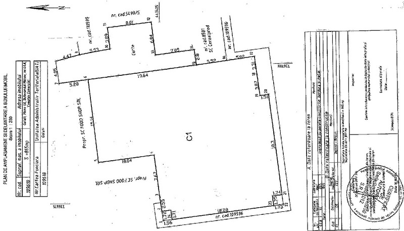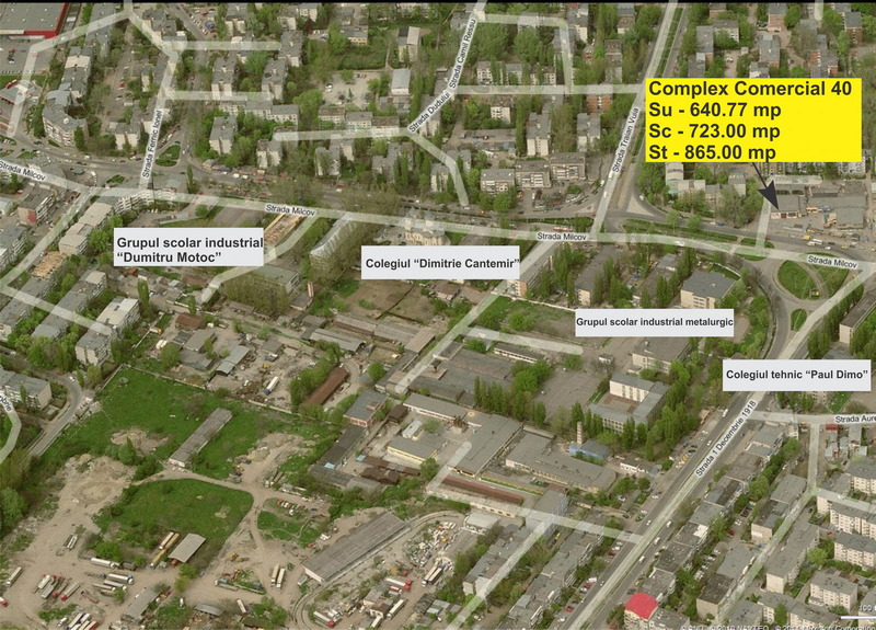 Adresa: Galati, str. Milcov nr. 44, Complex comercial Micro 40; St – 859 mp; Sc – 744 mp; Su – 640.77 mp; Spatiul detine toate utilitatile: apa, energie electrica, gaz, canalizare.