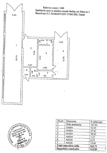 Suprafata construita: 4.381 mp